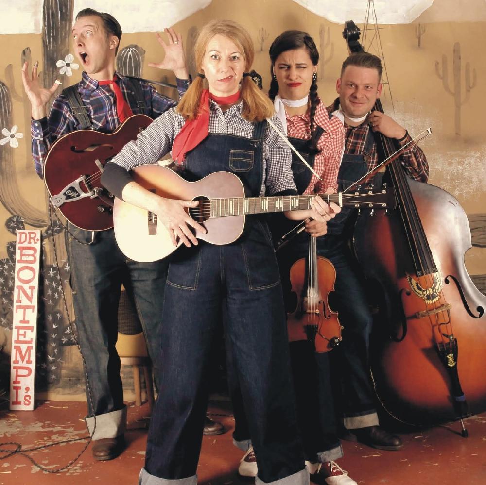 Wenn Dr. Bontempi's SNAKE OIL Company zum Tanz aufspielt, swingt und schunkelt, rockt und schaukelt es wie in einem Saloon aus den schwarz/weiß Western-Filmen. Dabei führten sie ihre Gastspielreisen schon quer durch den europäischen Kontinent und bis nach Nashville, Tennessee, wo sie im Rahmen des "Nashville Boogie"-Festivals schon im berühmten Nashville Palace spielen durften. Und als wäre das nicht genug, tritt die Schlangenöl-Kompanie stilecht in spitzen Stiefeln, Anzughosen und Westernhemden auf und benutzt alte Instrumente und Verstärker, die nicht nur optisch den Glanz der alten Ära versprühen, sondern auch so klingen. Als kleines extra Schmankerl kann man sich Dr. Bontempi's original Schlangenöl sogar mit nach Hause nehmen, aber - VORSICHT! Nur ein Tropfen am Tag!